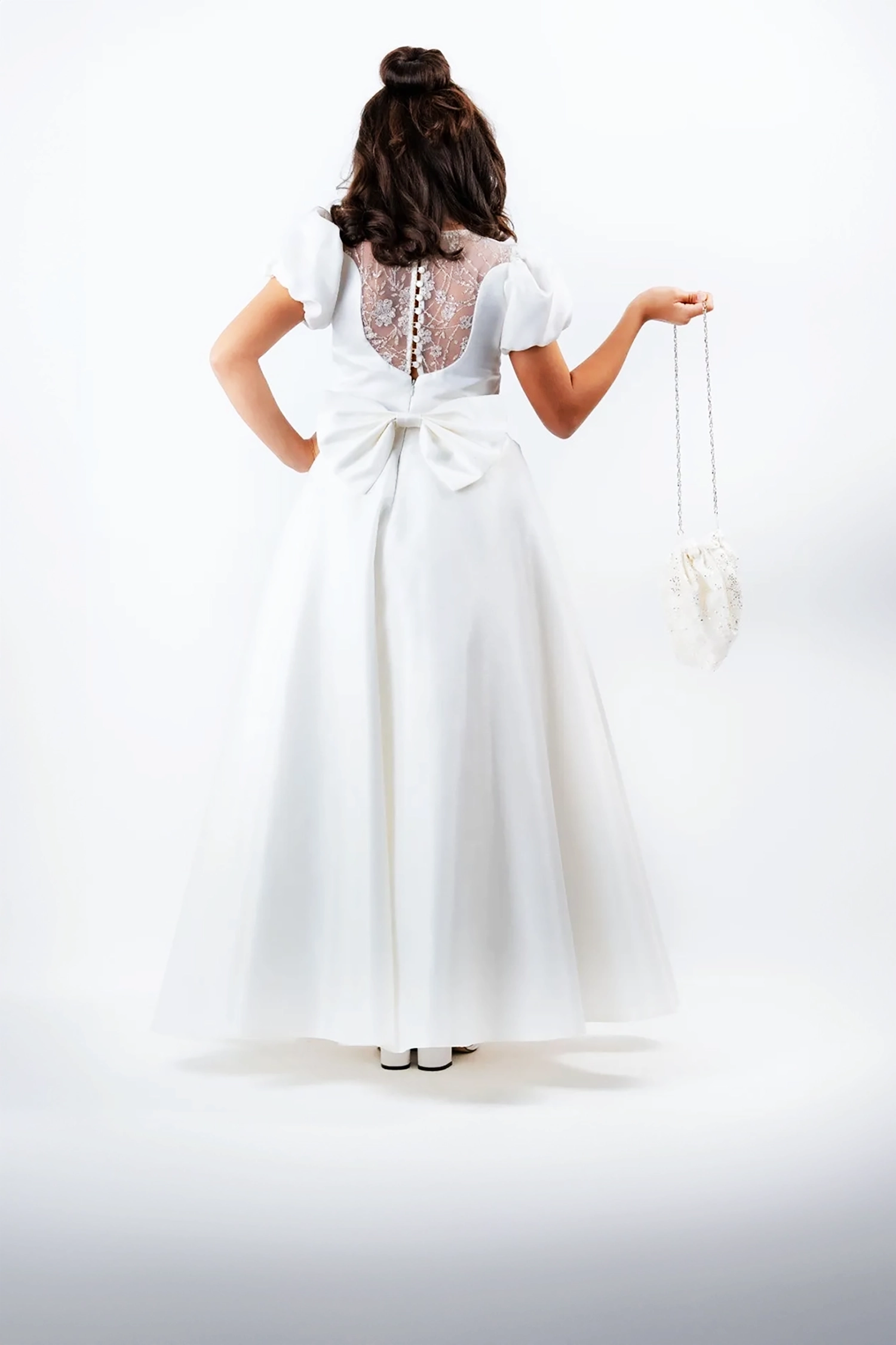 Short sleeve bridal dress made of Aashiq and satin with dante fabric