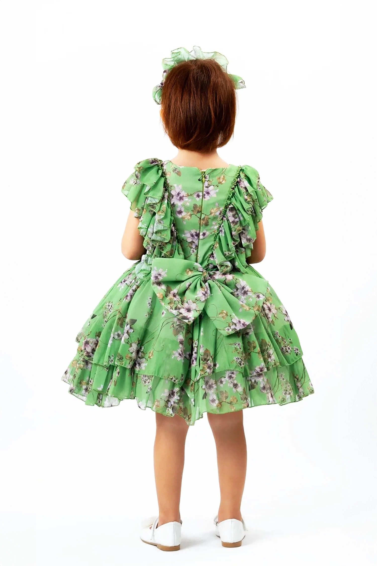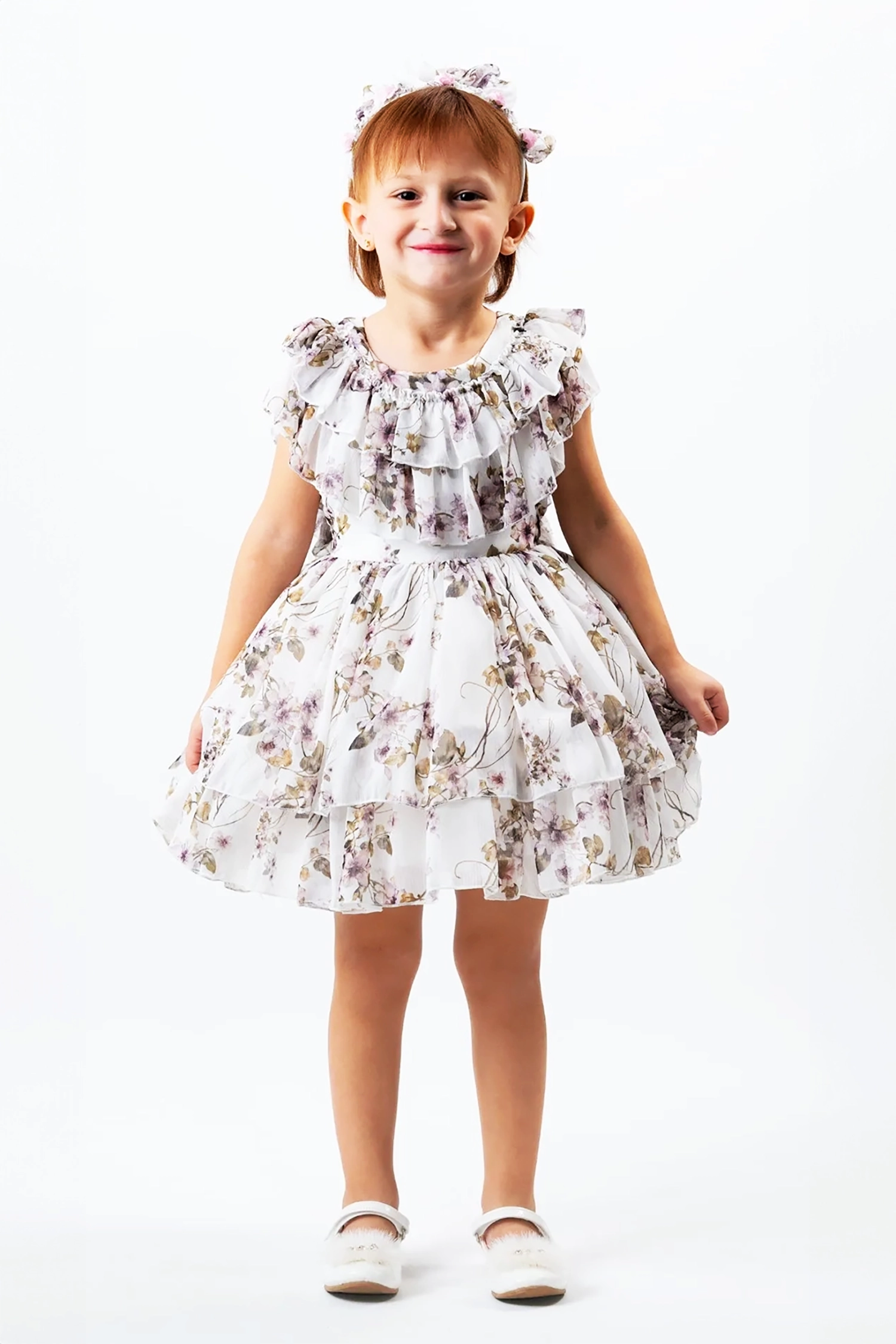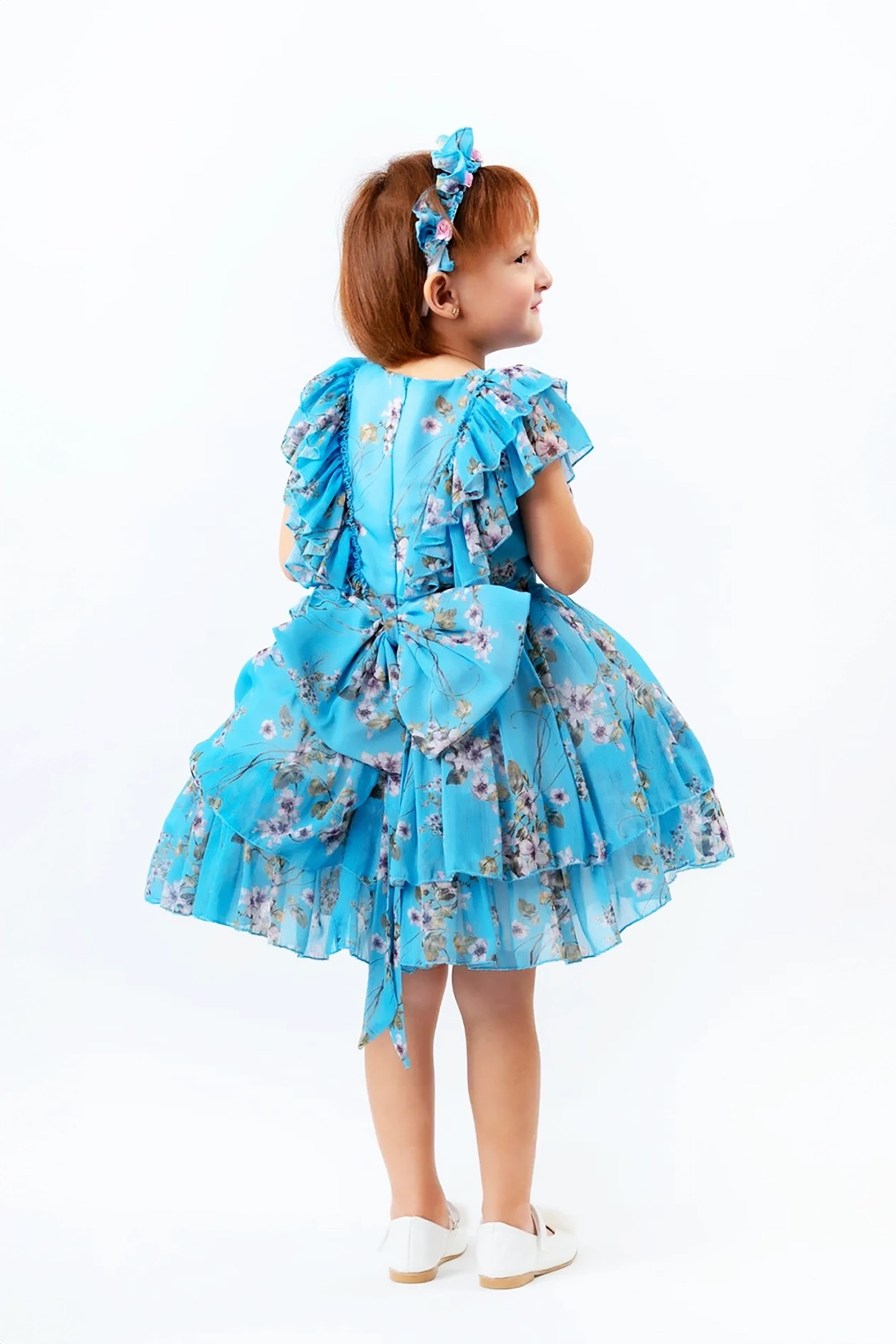 Sleeveless summer dress made of floral print ureo chiffon fabric