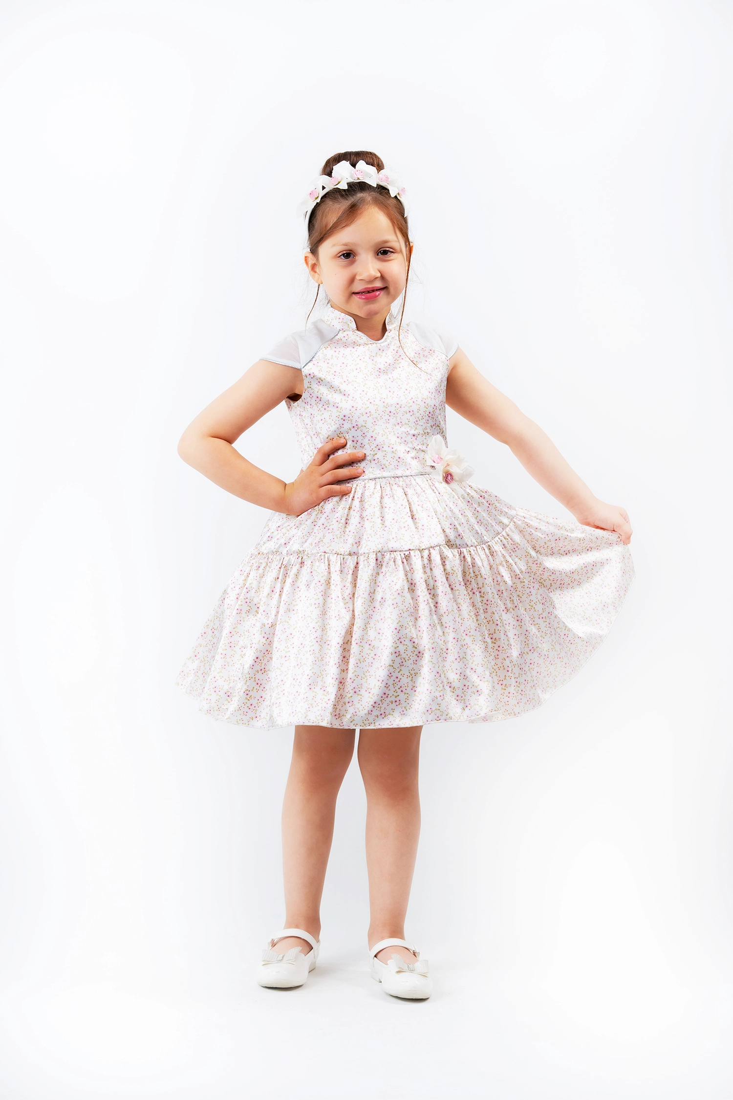 Top off the summer vibe with this double brocade and broderie anglaise dress. Simple and elegant in design, and with the use of comfortable lace fabrics in the skirt and sleeves, this dress is the perfect choice to make a statement.
