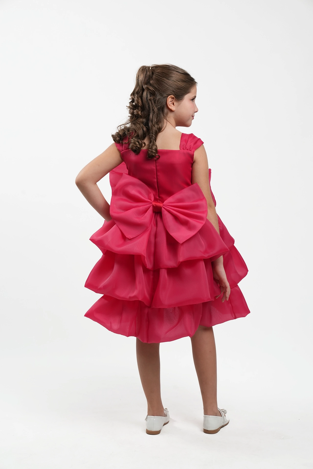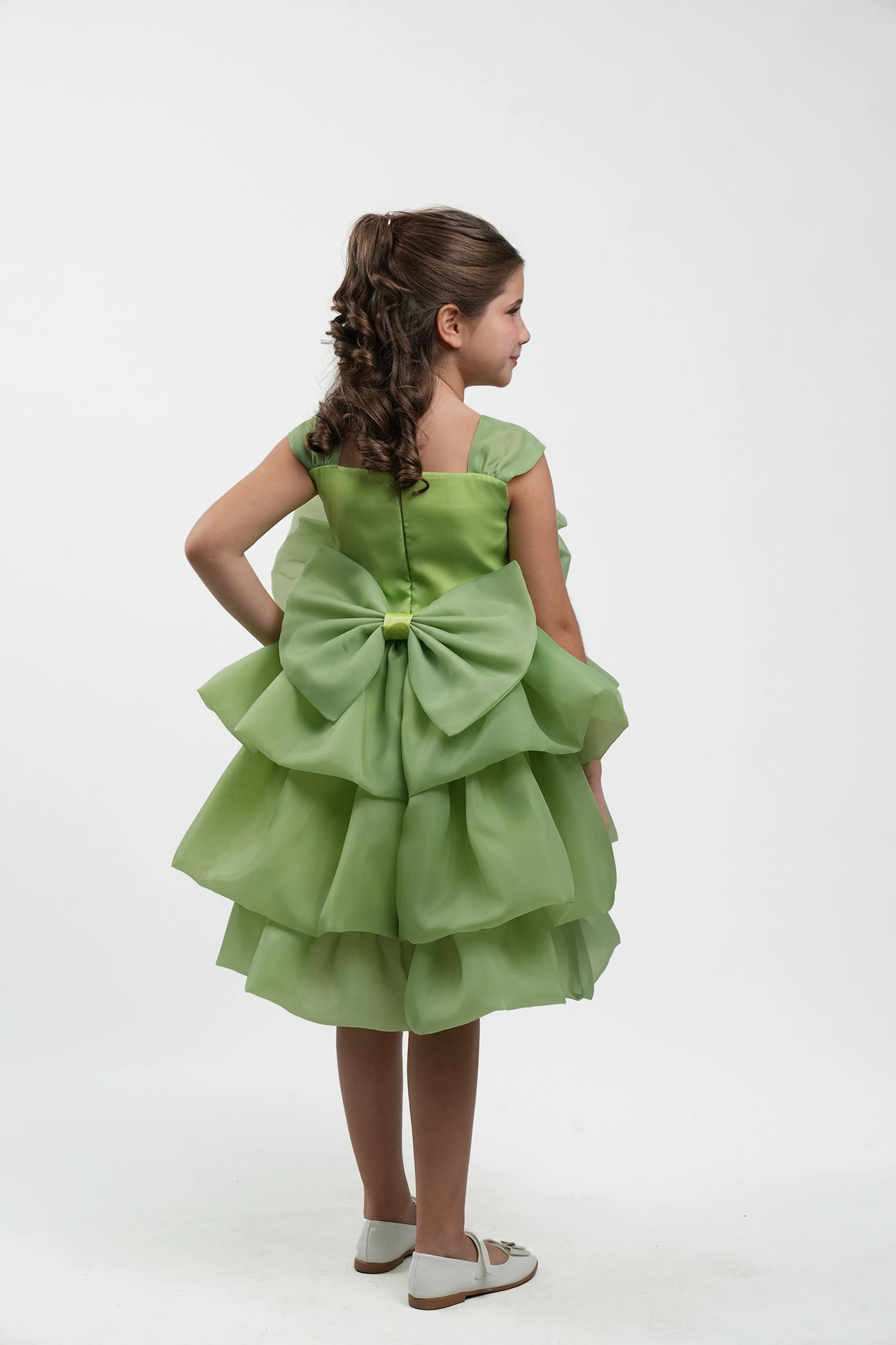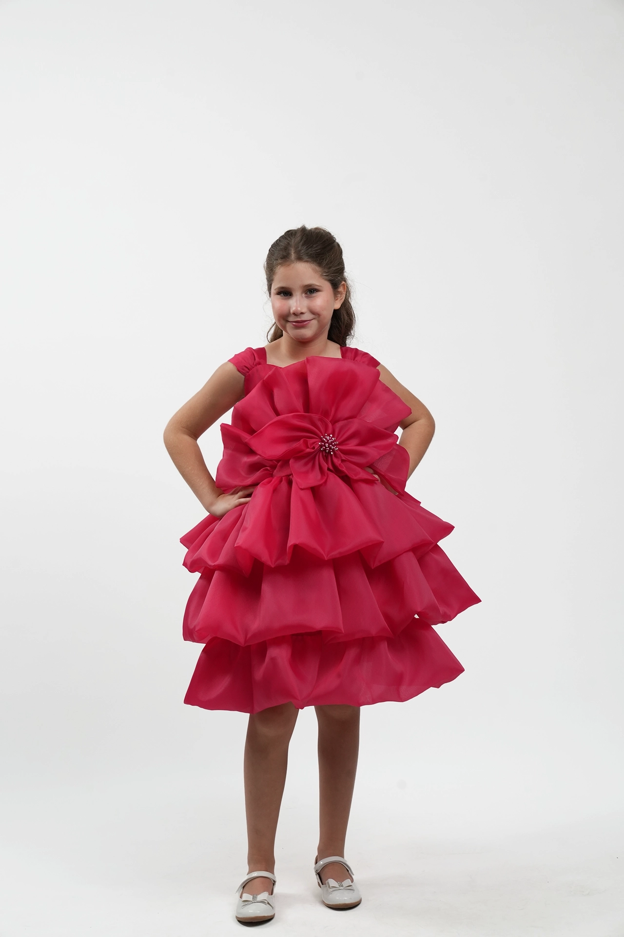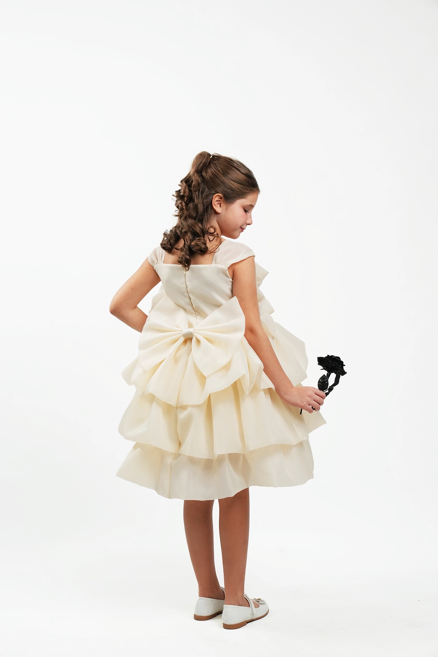 Elegant bridal dress made of organza with wavy design and large flower detail