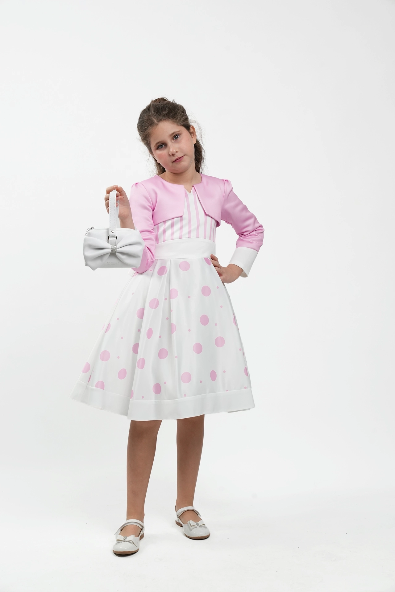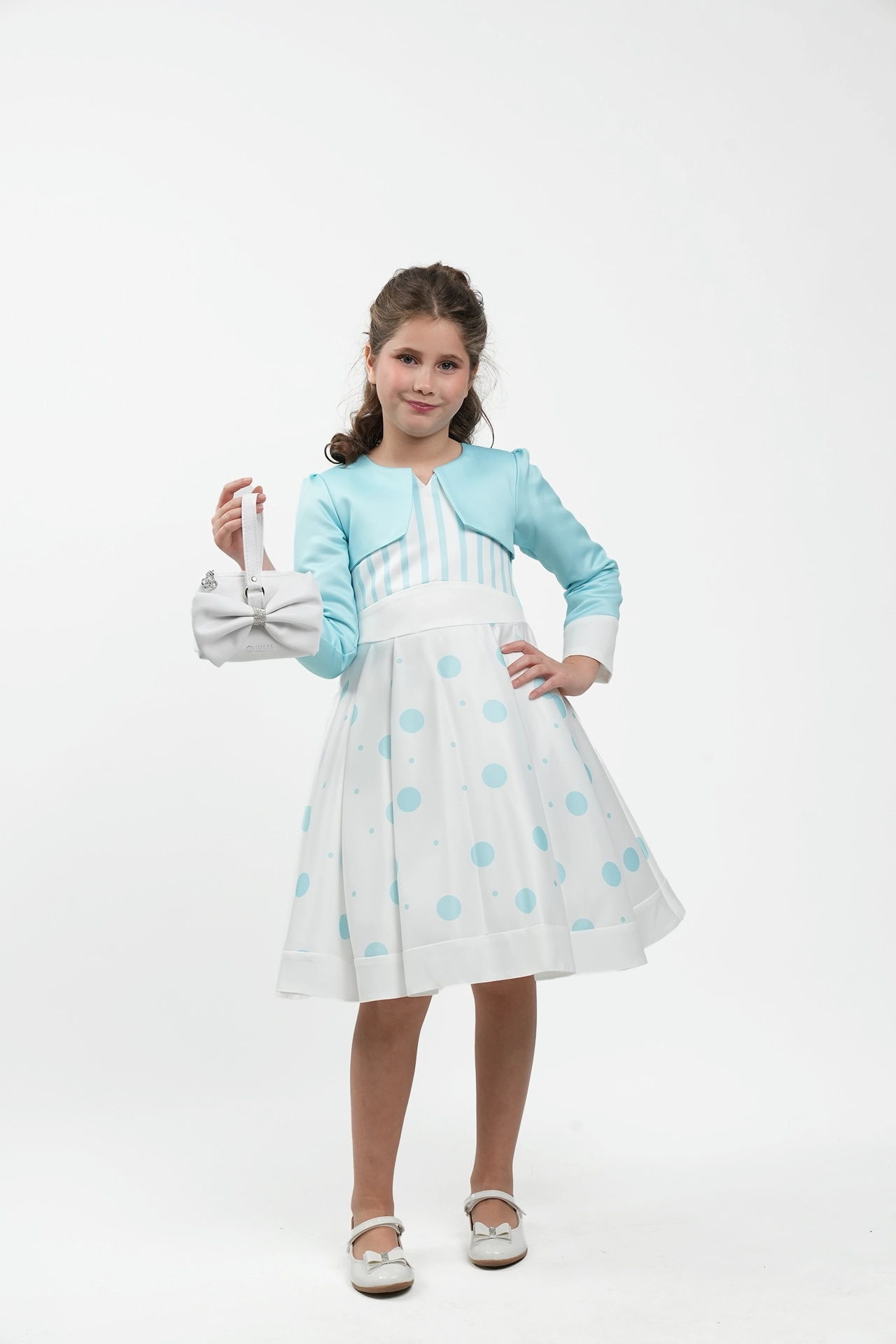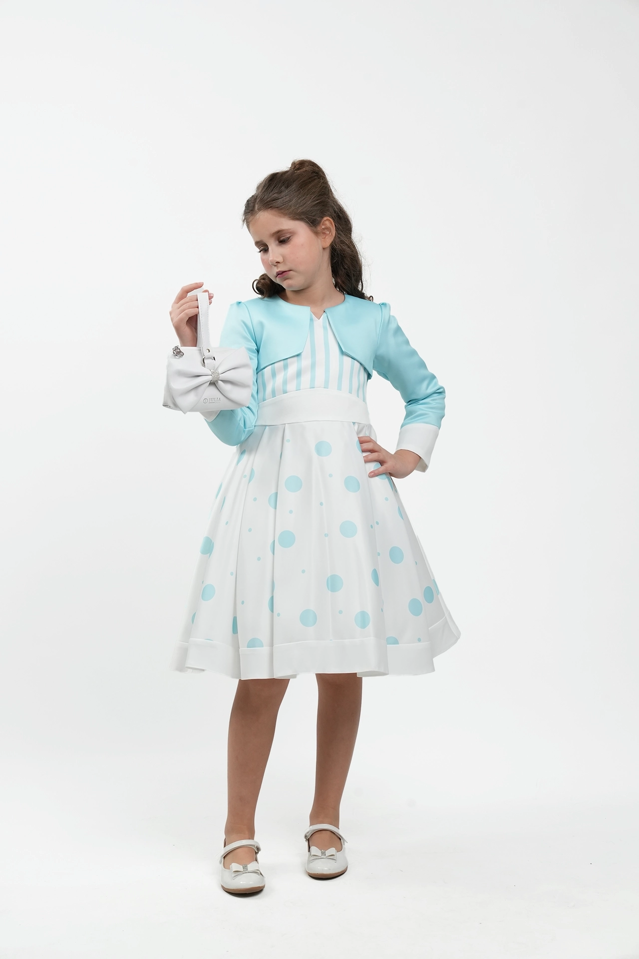 A contemporary winter design combining matte satin with digital prints for a fresh look.