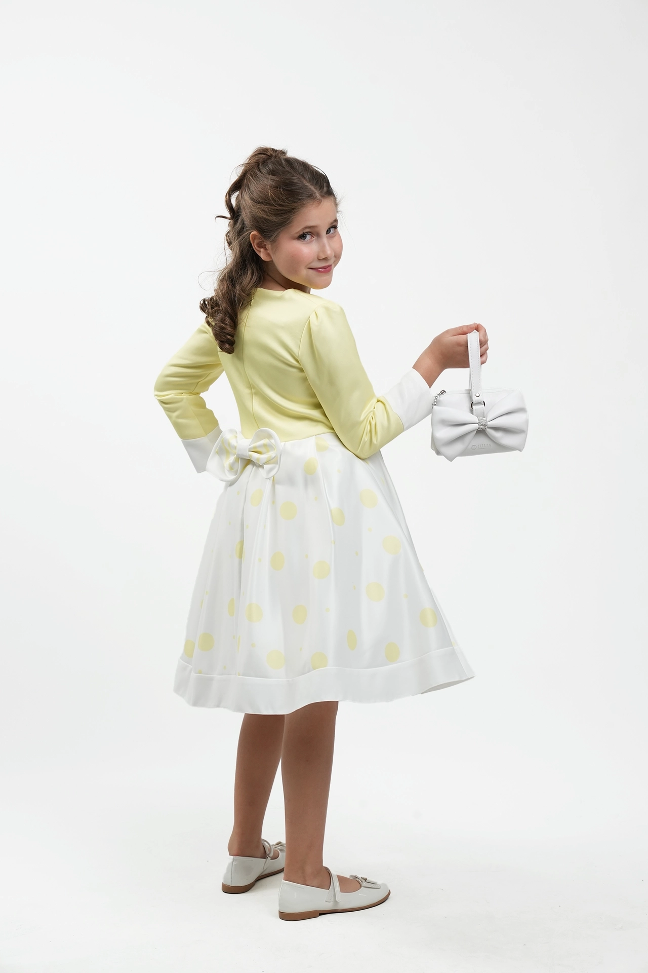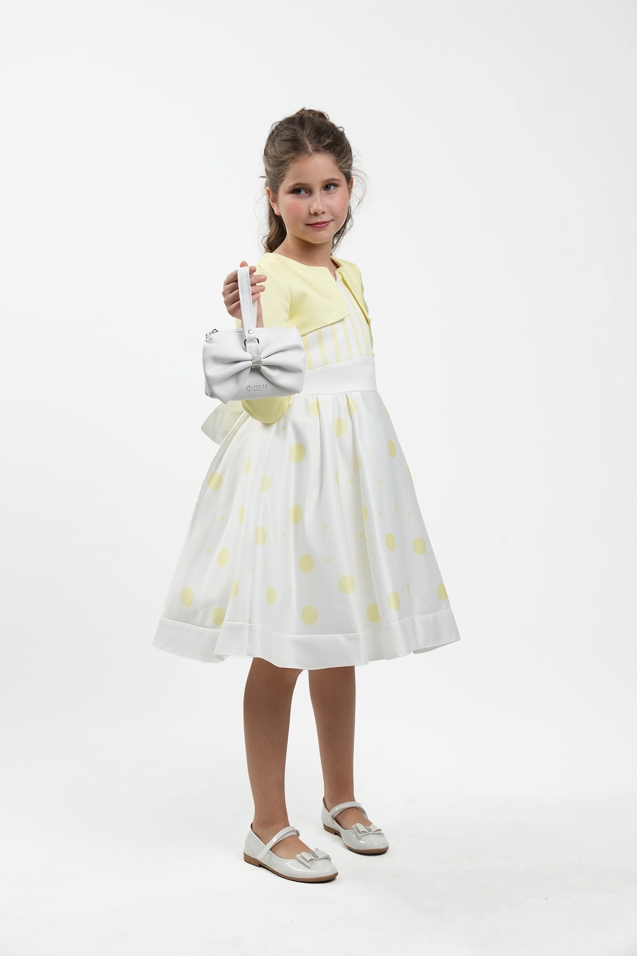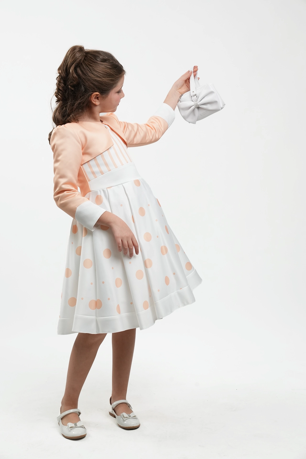 A contemporary winter design combining matte satin with digital prints for a fresh look.