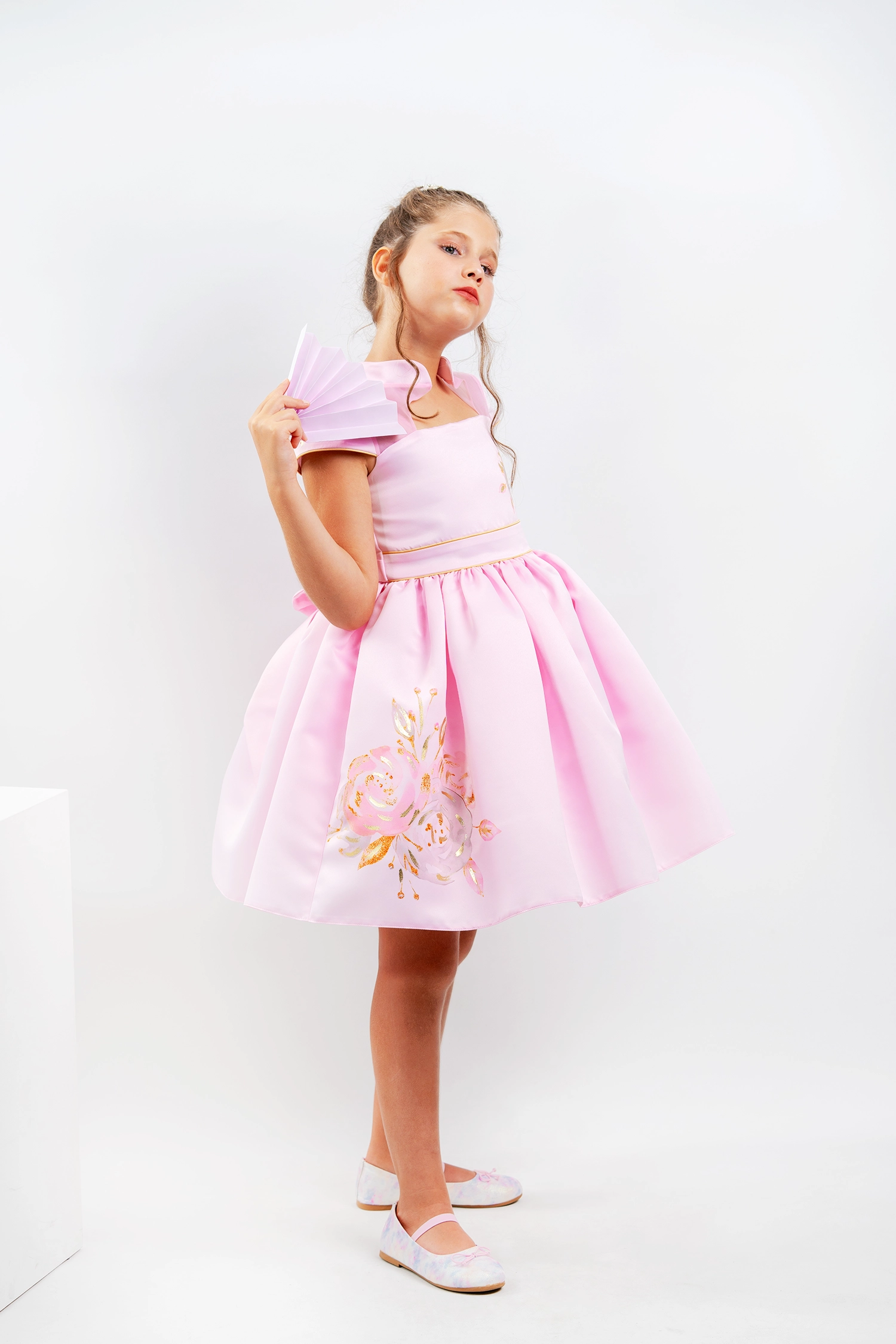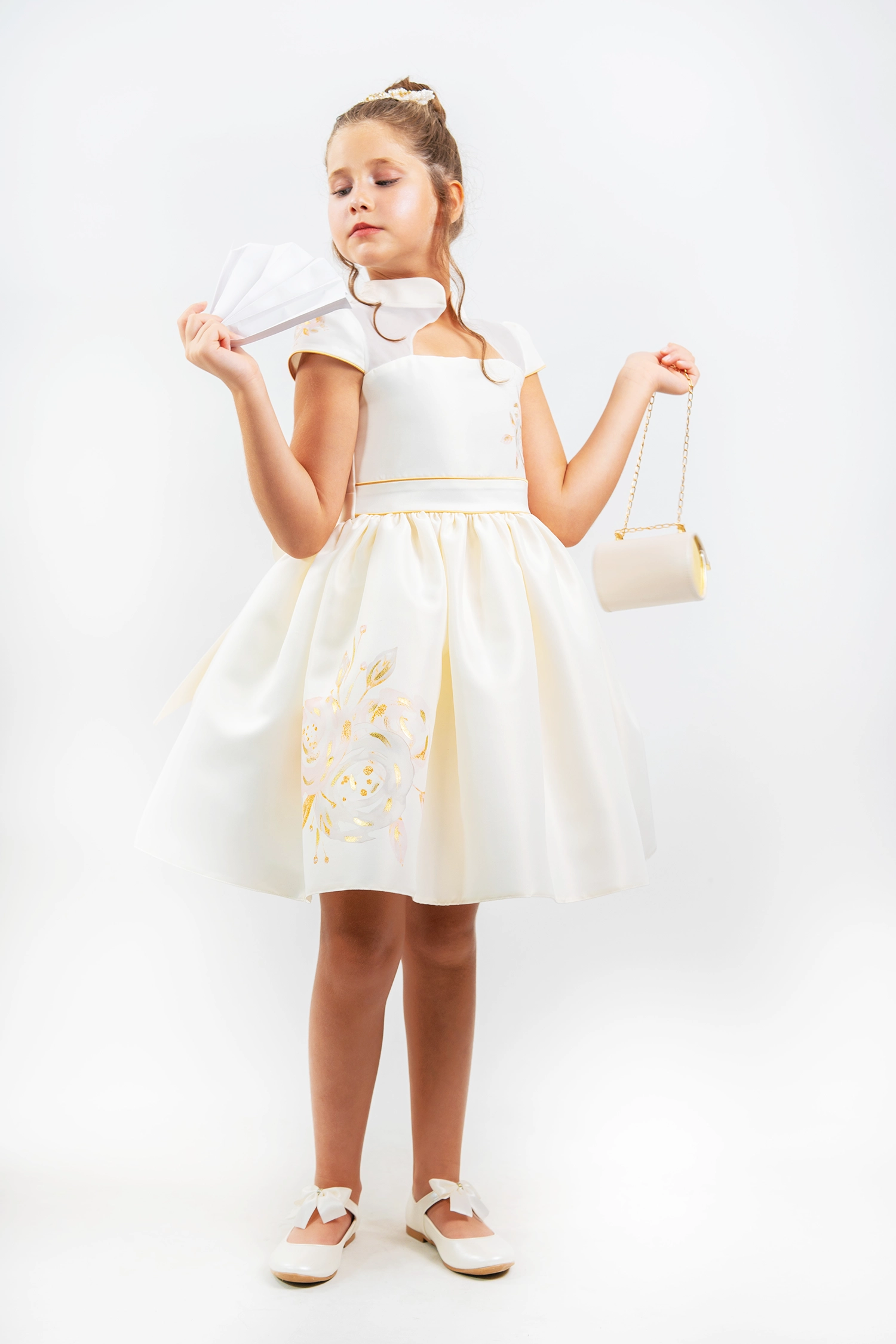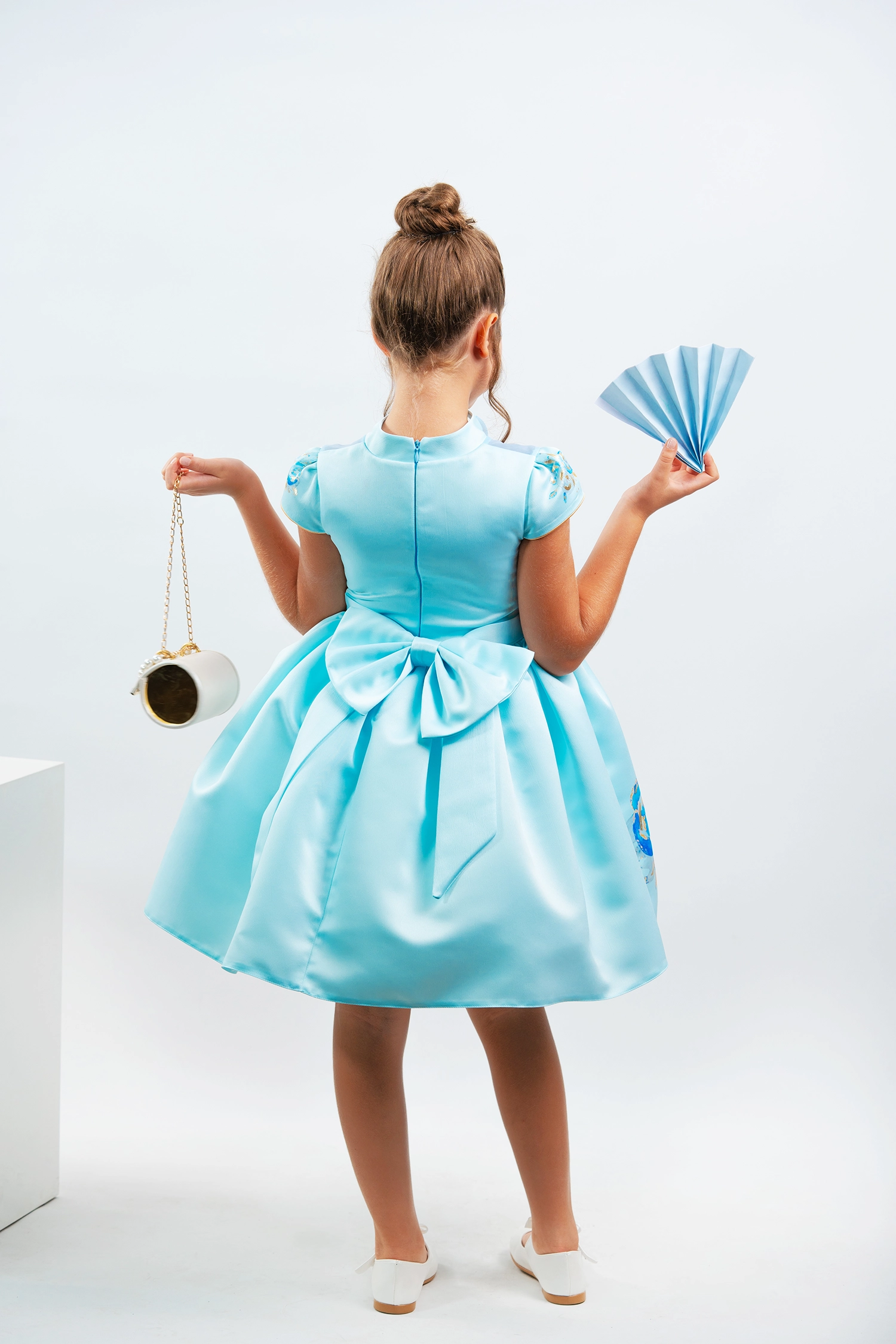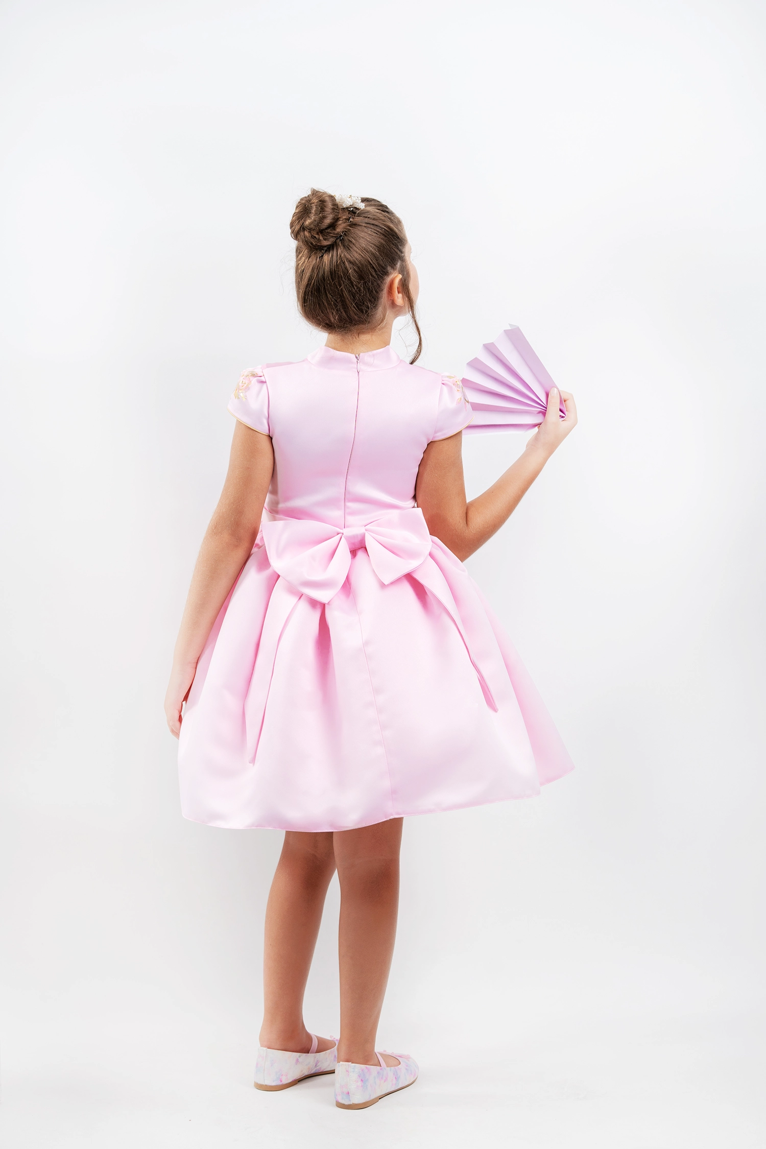 Chinese-inspired winter dress made of matte satin