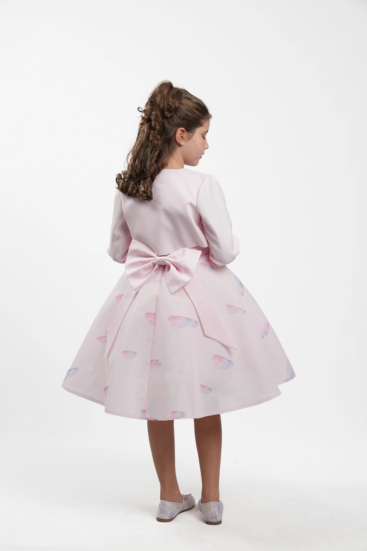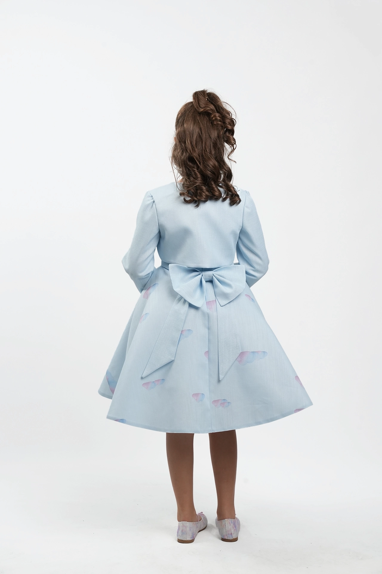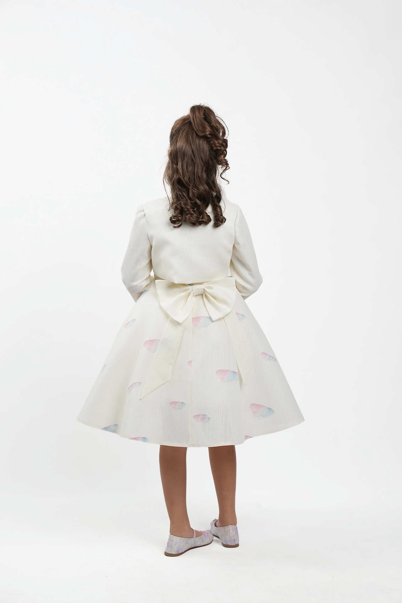 Luxury winter dress made of printed gardenia jacquard with satin
