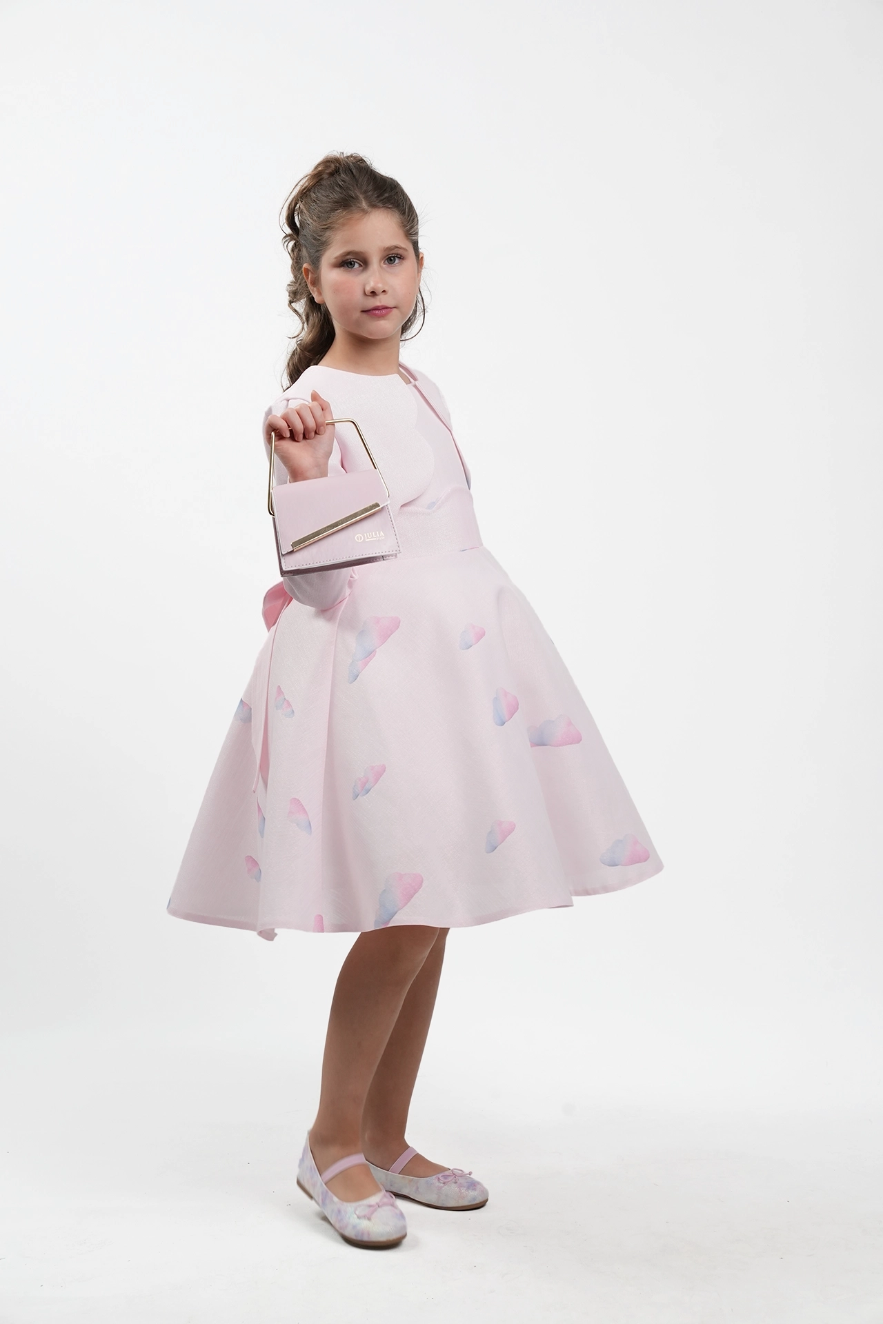 A refined dress made of digitally printed gardenia jacquard combined with satin details.