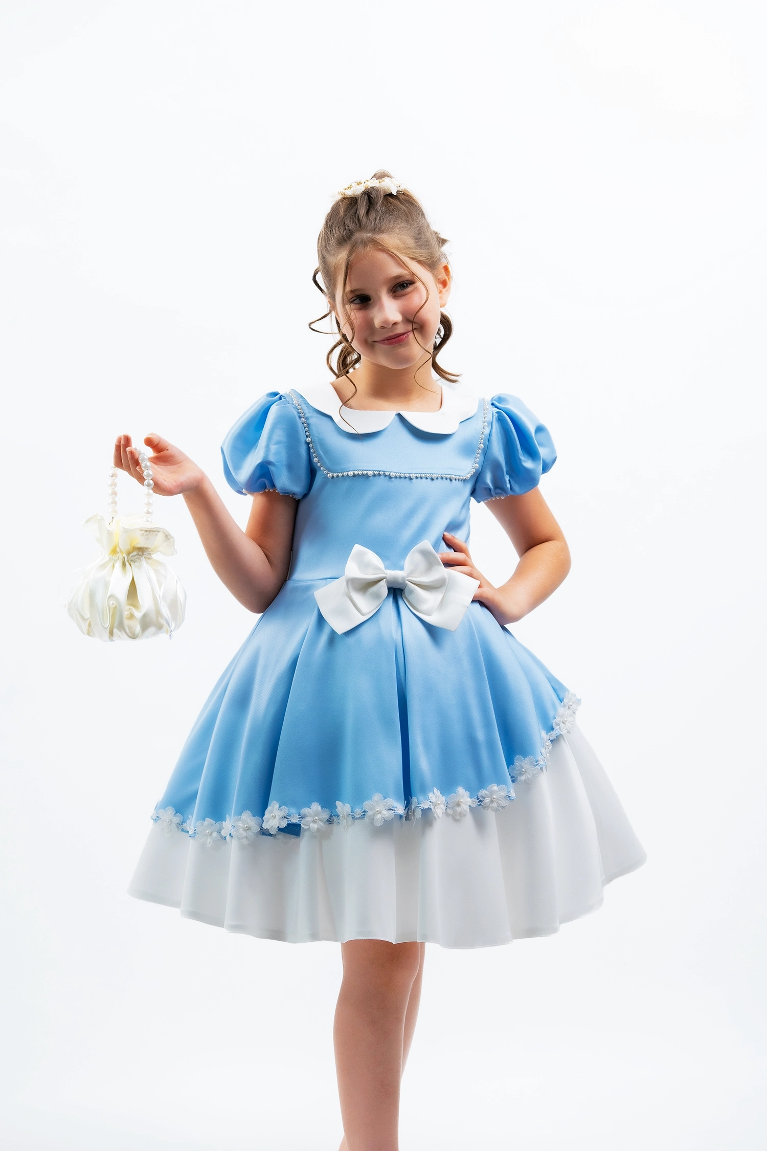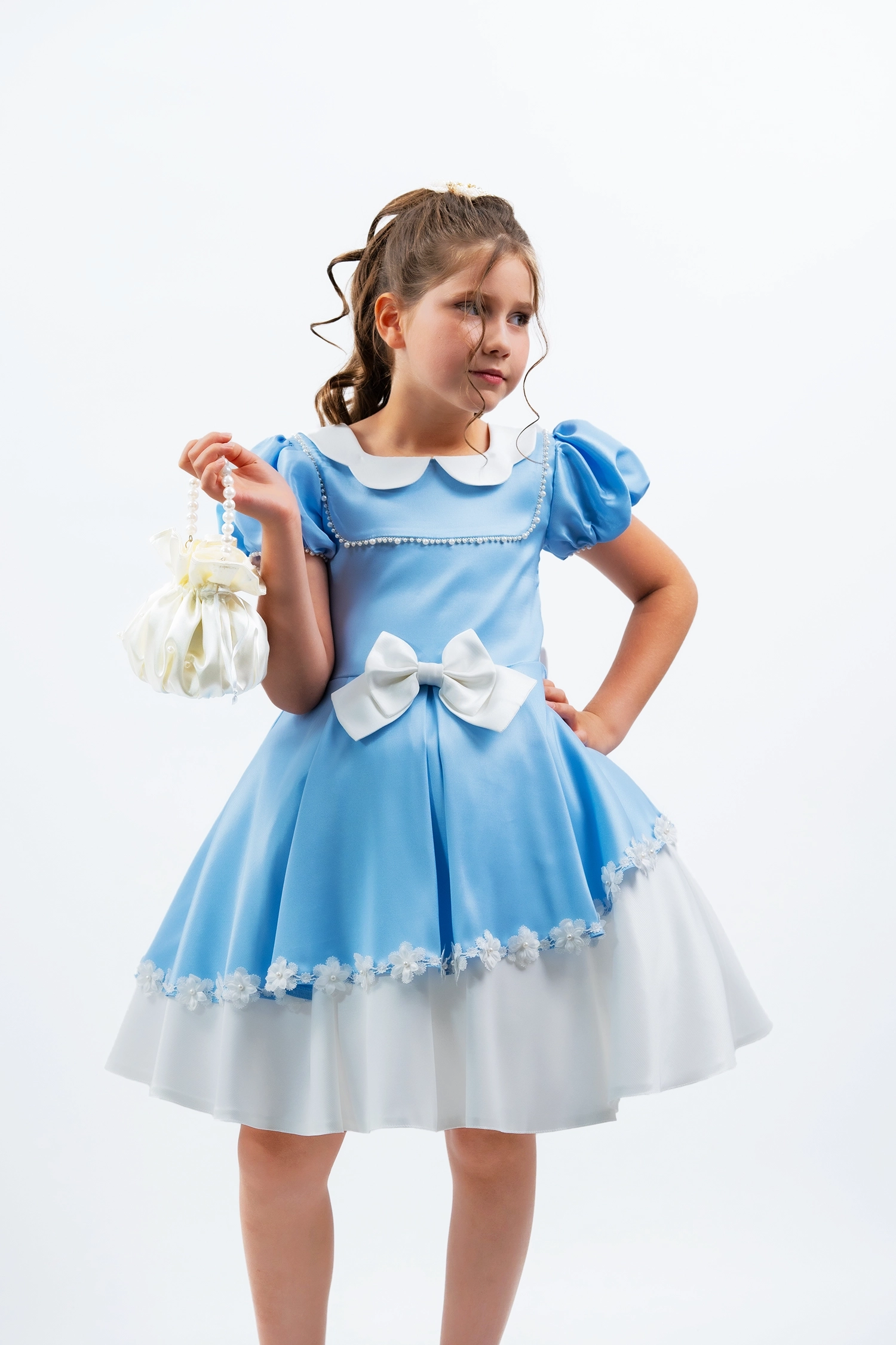 A feminine design with graceful flounce sleeves and refined fabric, perfect for elegant summer occasions.