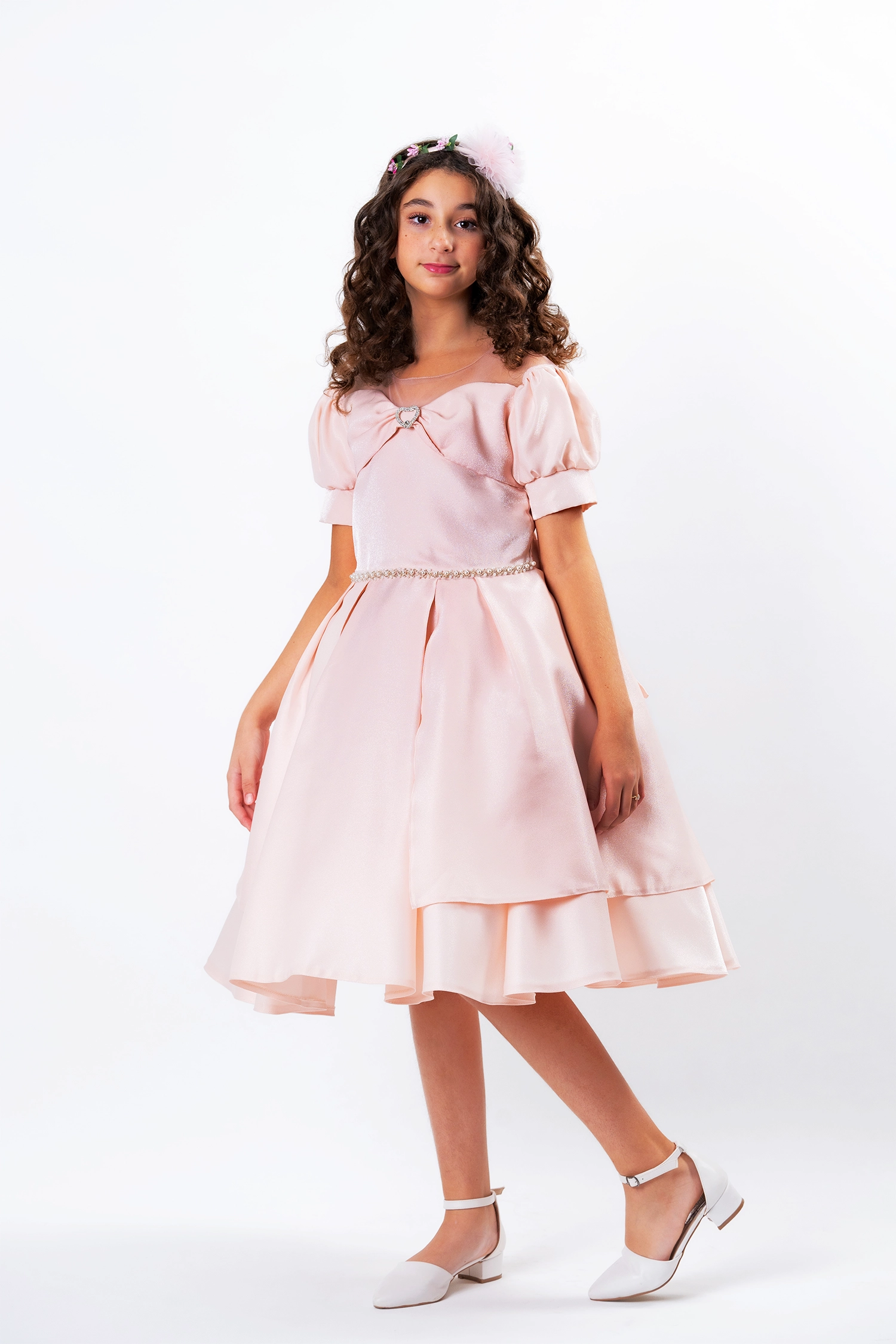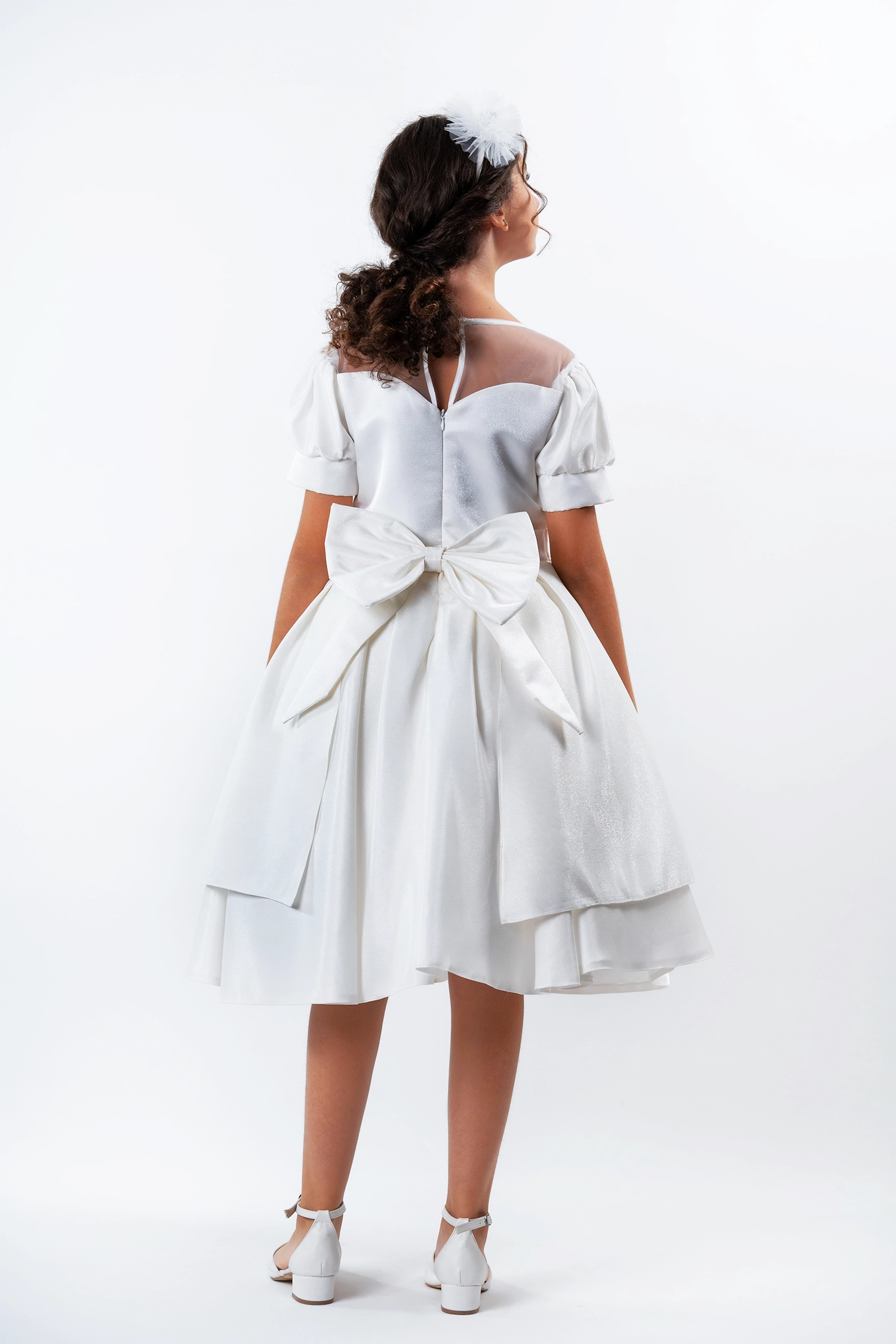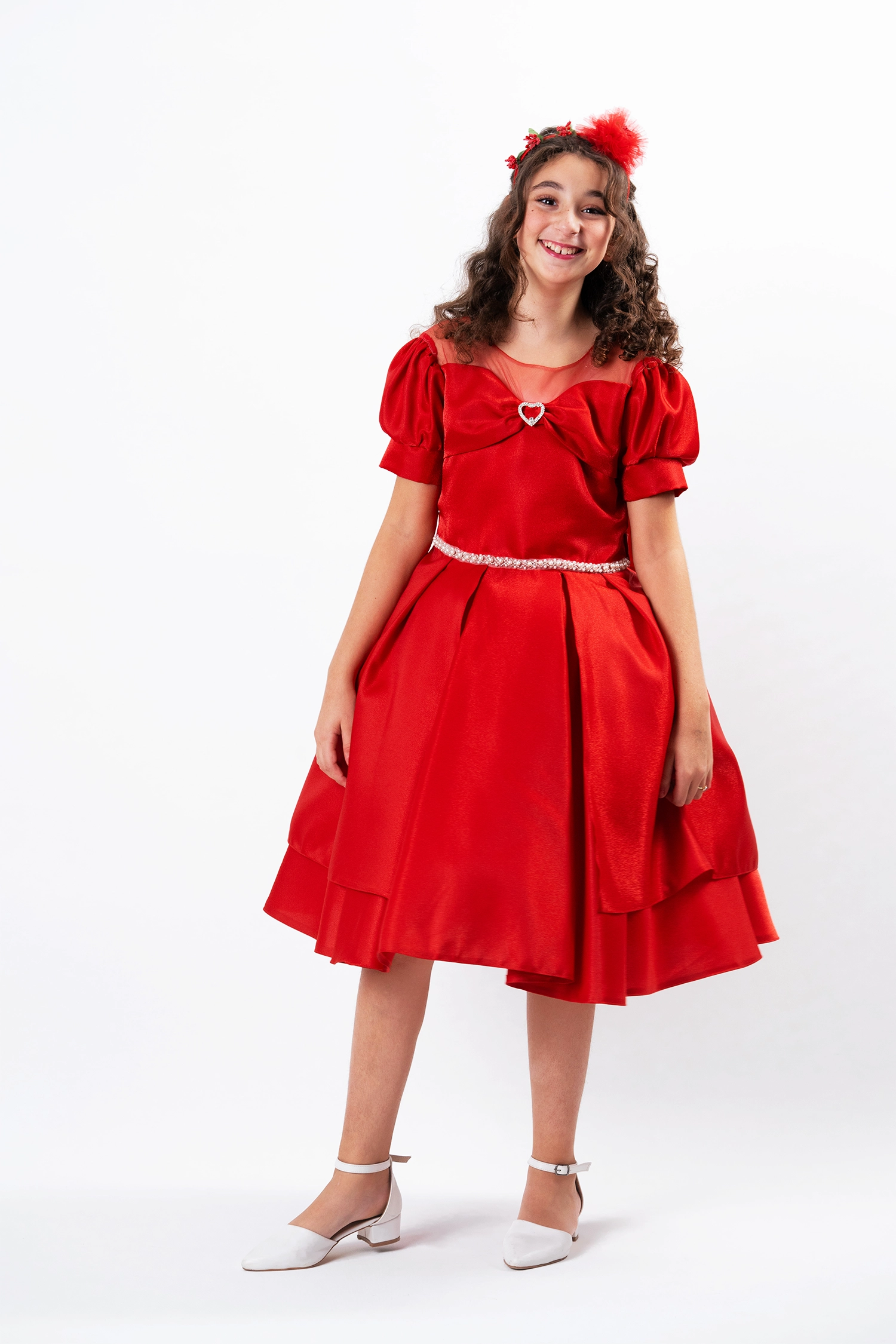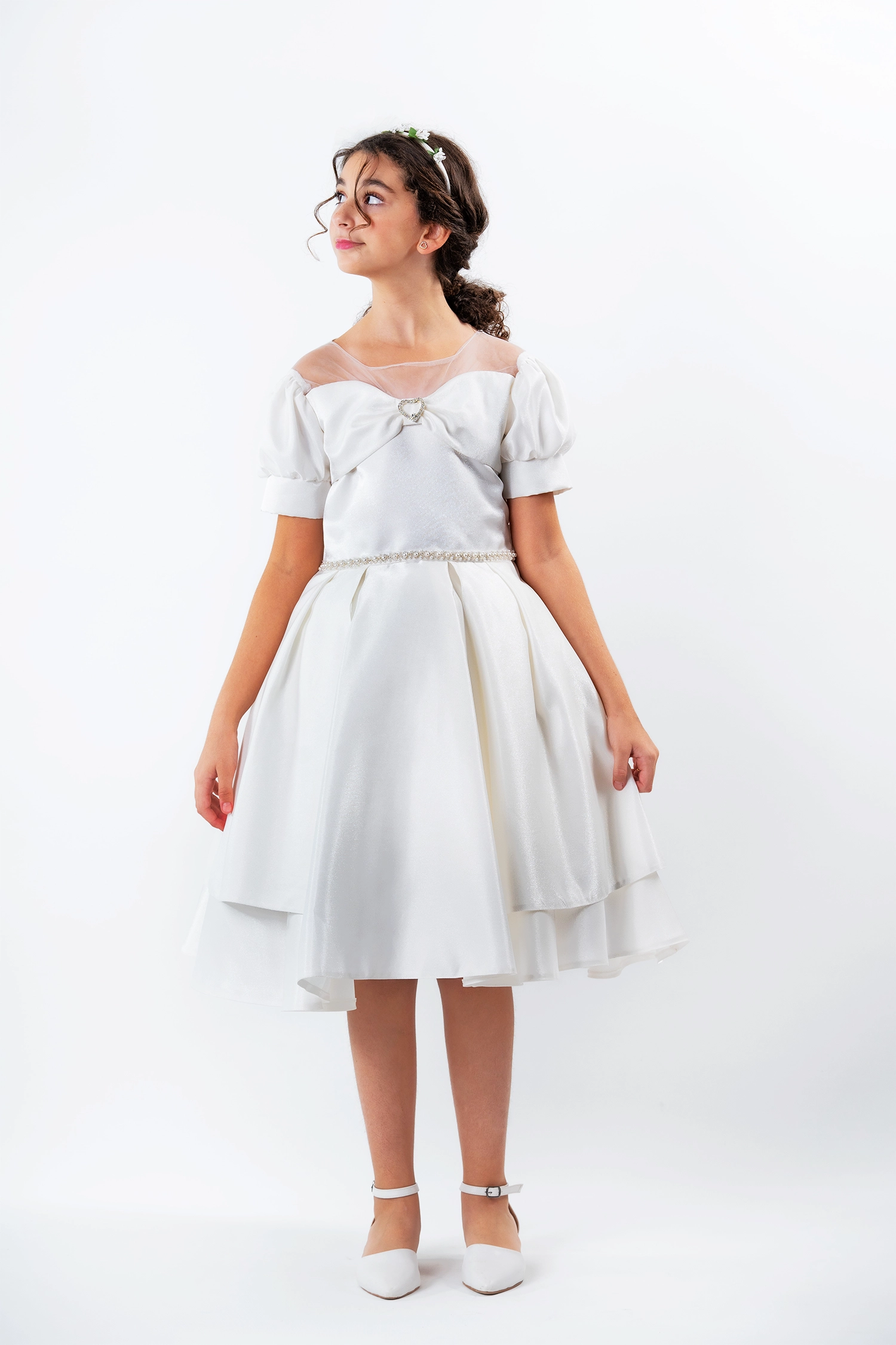 An elegant gown for every occasion, crafted from a shimmering satin fabric that gives it a touch of luxury. The dress features a luxurious design with a flared double clutch skirt with extra layers and tulle sleeves that add a touch of sophistication